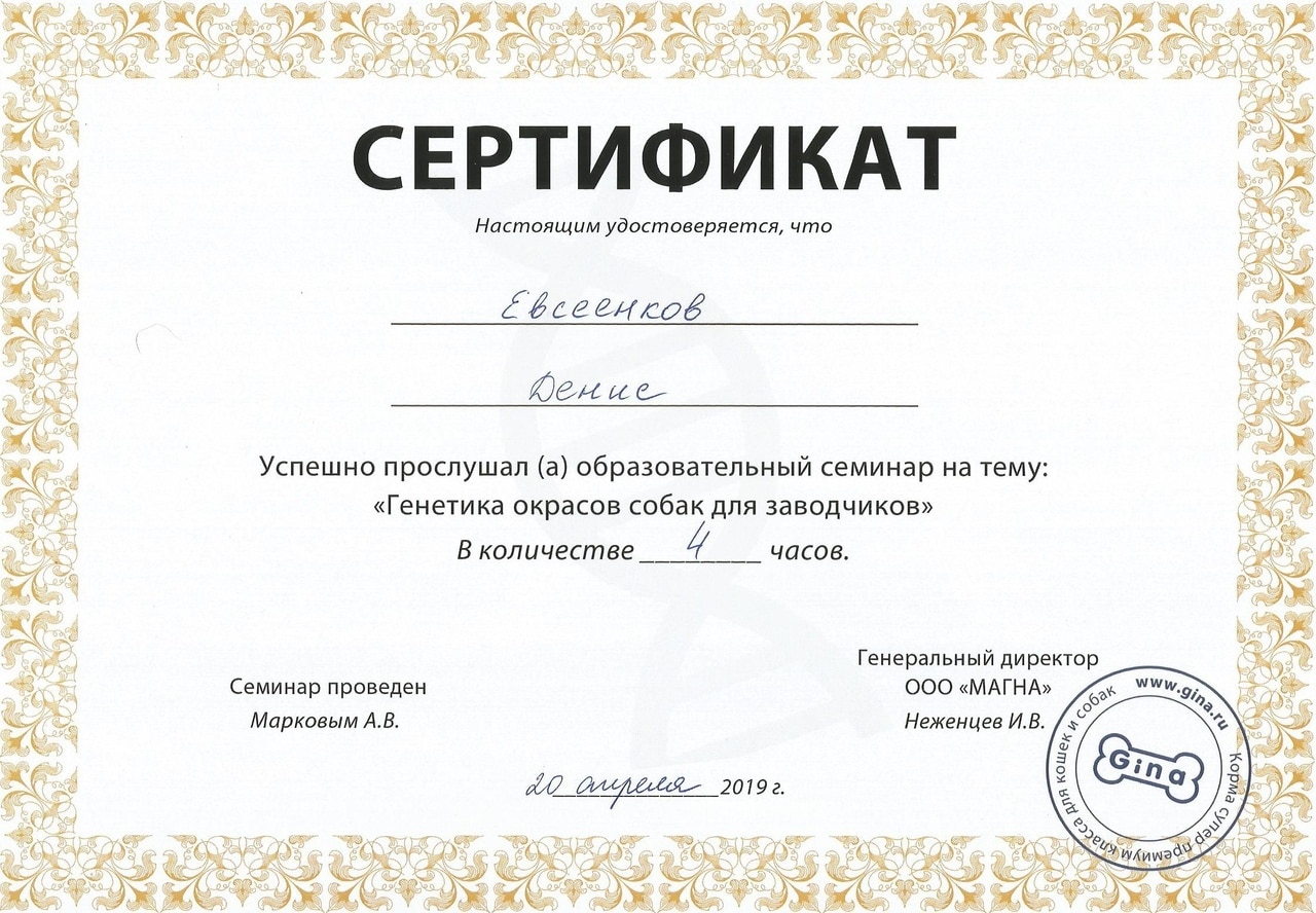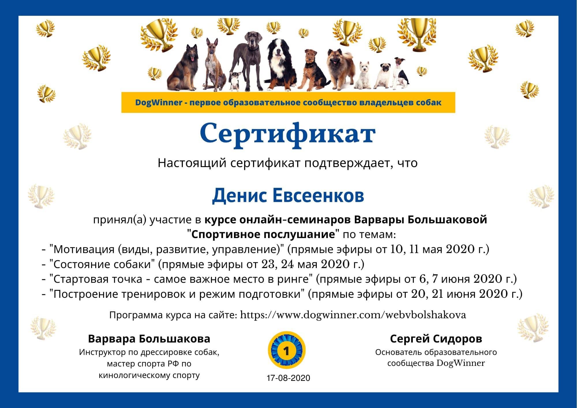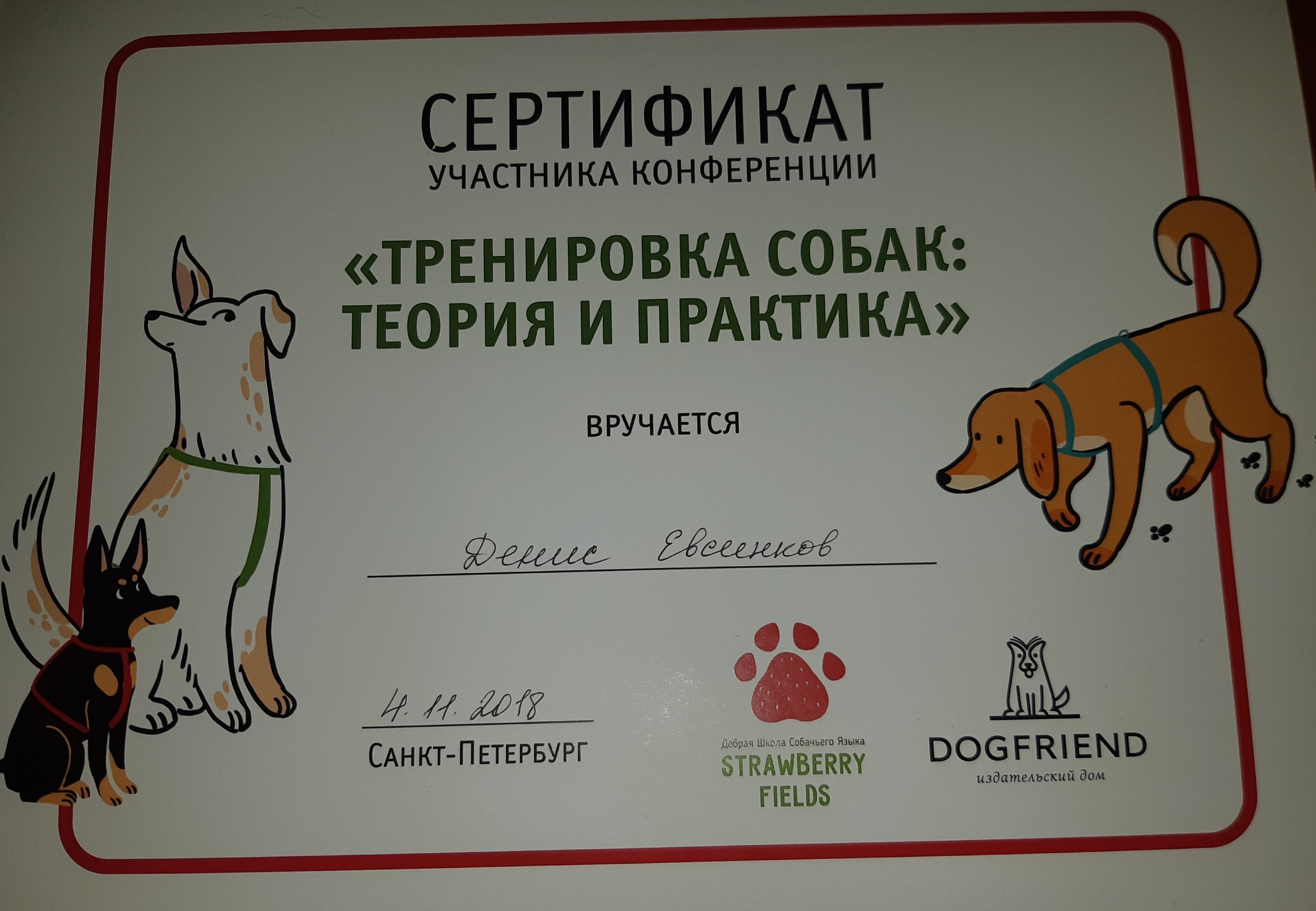 ЕВСЕЕНКОВ Денис /Кинолог, Зоопсихолог, Санкт-Петербург/ _____ Провожу индивидуальные консультации и тренировки: • Начальный курс послушания: основные команды, хождение на поводке, выдержка. • Социализация щенка: первые дни в доме, приучение к туалету, приучение к процедурам, приучение оставаться дома одному, приучение к амуниции, развивающие игры, как избежать укусов, алгоритм знакомства щенка с окружающими раздражителями (улица, люди, собаки и др.), неподбор на улице и многое другое. • Коррекция проблемного поведения: нечистоплотное поведение, чрезмерный лай, боязнь улицы, тревожность, фобии, боязнь одиночества, гиперактивность, погромы в квартире, агрессия к собакам, агрессия к людям, проблемы охраны ресурсов Мое отношение к собакам. Выбор моего образования был продиктован любовью к животным. Собаки занимают в моей жизни очень важную роль. Я считаю их уникальными творениями природы, которые живут рядом с нами уже много тысяч лет. Несмотря на это тесное и долгое сотрудничество, владельцы собак постоянно сталкиваются с ситуациями, которые заставляют их пересматривать свои взаимоотношения с питомцами. Часто люди выбирают очень некорректные, болезненные и неэффективные методы коррекции поведения, что только ухудшает взаимопонимание между собакой и владельцем. Моя цель – помочь понять собаку, найти оптимальные и эффективные алгоритмы решения проблемы. При этом ключевым моментом в отношениях между человеком и собакой должна быть не «война», а взаимовыручка и партнерство!